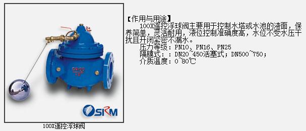 口向水池注水,實(shí)現(xiàn)自動補(bǔ)水.液位控制精度準(zhǔn)確,不受水壓干擾;100X隔膜式遙控浮球閥可隨水池的高度及使用